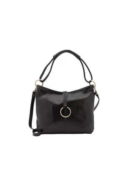 Кожена чанта през рамо Wendy с тока - Черен