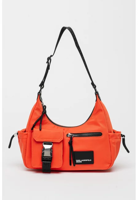 Текстилна чанта за рамо с лого - Бял/Мандарина