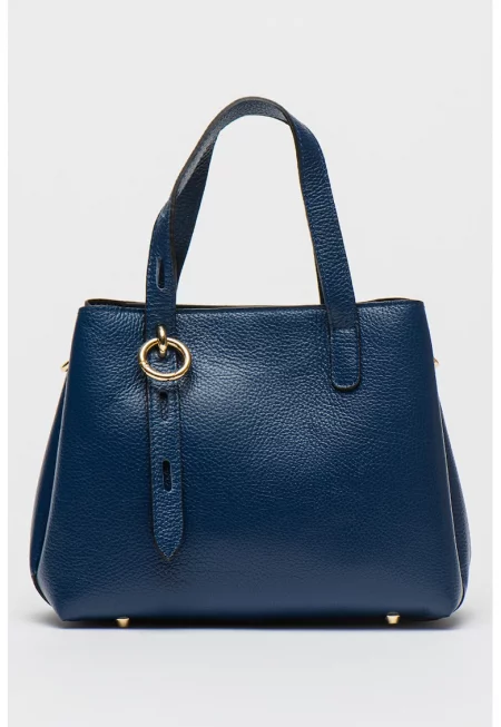 Кожена шопинг чанта - Тъмносин