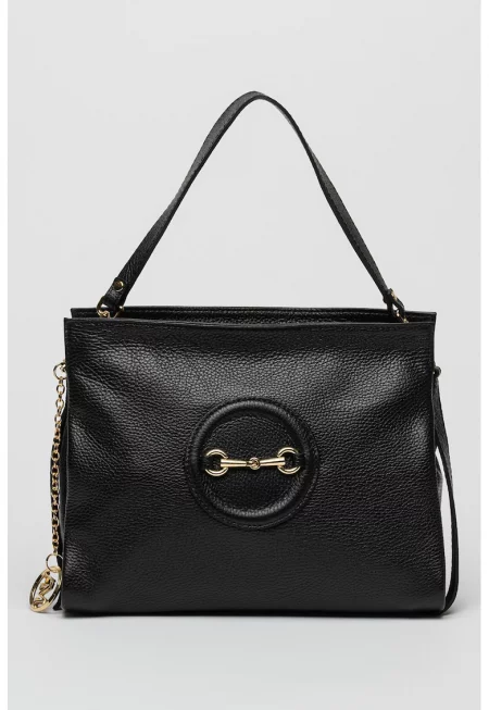 Чанта за рамо от еко кожа с декоративна верижка - Черен