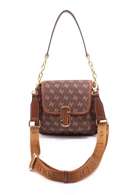 Чанта през рамо от еко кожа - Тъмнокафяв