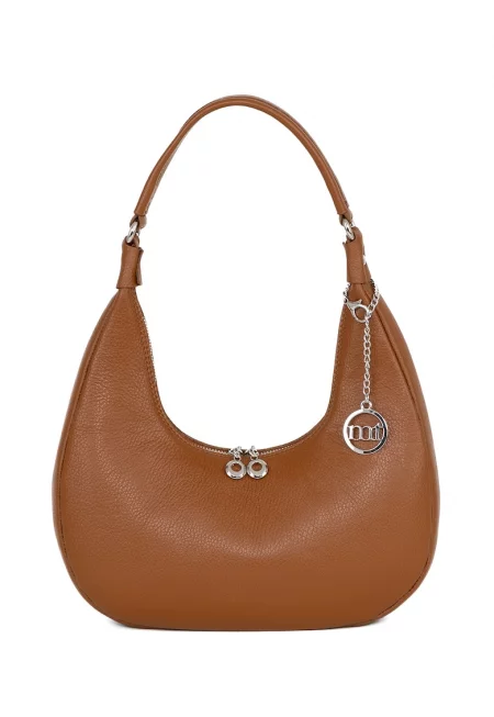 Кожена чанта за рамо с отделяща се презрамка - Канелено кафяво