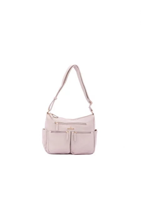 Чанта през рамо от еко кожа с джобове - Светло сив