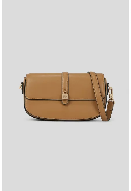 Кожена чанта през рамо с катинар с гравирано лого - Камел