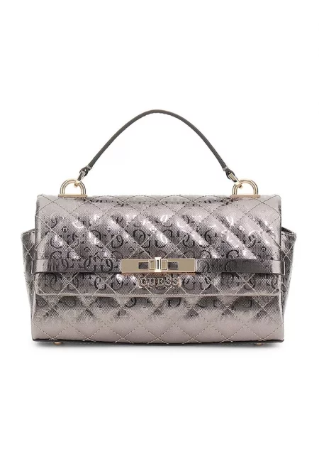 Капитонирана чанта през рамо от еко кожа - Tъмносив