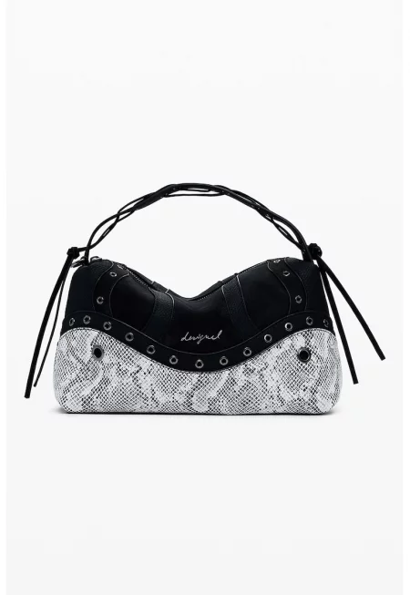 Чанта за рамо с контрасти - Бял/Черен