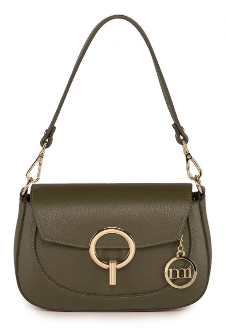 Кожена чанта с отделящи се презрамки - Тъмно каки