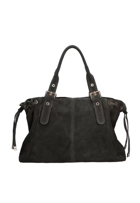 Кожена ръчна чанта Oriana Plus с велур - Черен