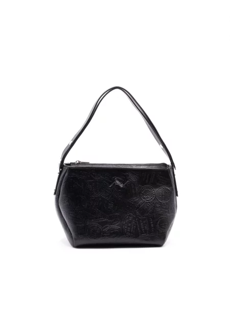 Релефна кожена чанта за рамо - Черен