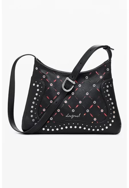 Чанта за рамо от еко кожа с метални илици - Черен