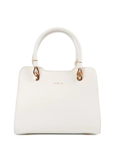 Дамска бяла чанта куфарче - елегантна - компактна - от полиестер