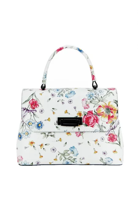 Чанта с флорален принт - Кожена - Бяла