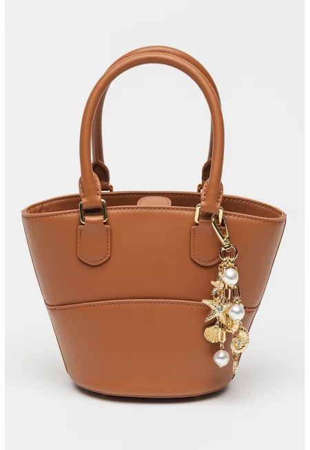 Кожена чанта тип кутия с ключодържател - Кафяв - 10 x 28 x 12 cm