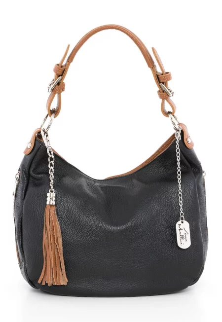 Дамска чанта Splendore Chic от естествена кожа - Черен