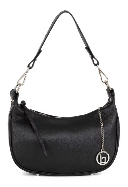 Кожена чанта за рамо с отделящ се аксесоар с лого - Черен