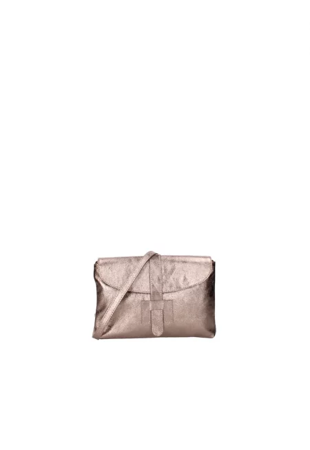 Кожен клъч с отделяща се презрамка - Бронз