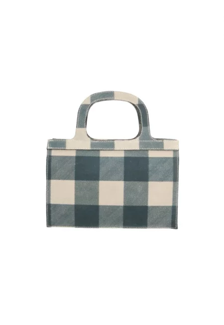 Карирана велурена чанта - Слонова кост/Прашно синьо