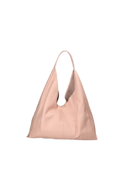 Кожена чанта с джоб с цип - Розово златисто