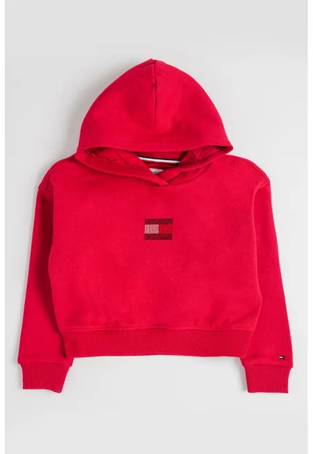 Худи с памук с декоративни камъни