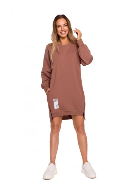 Дълга блуза с цип - Мо - Памук/Еластан - Шоколад