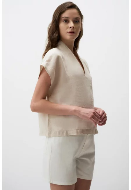 Ленена блуза с шпиц - Слонова кост