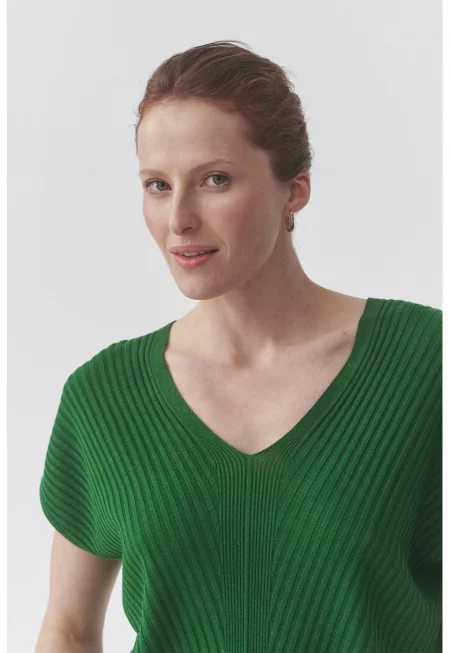 Блуза с яка и регулиращи се ръкави - Тъмнозелен