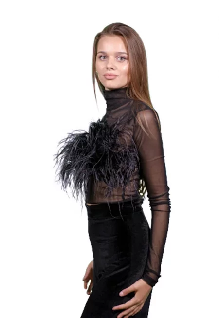 Мрежеста блуза с пера - Черен