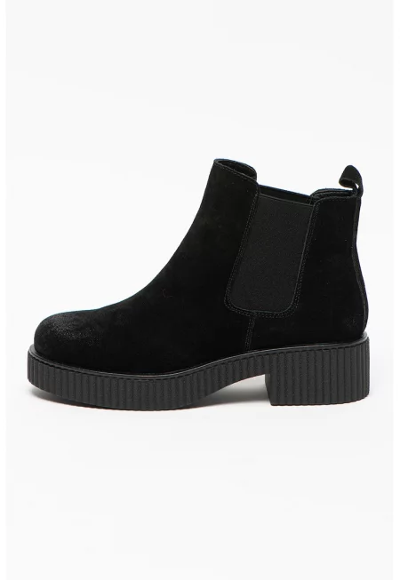 Велурени боти Chelsea с масивен ток - Черен