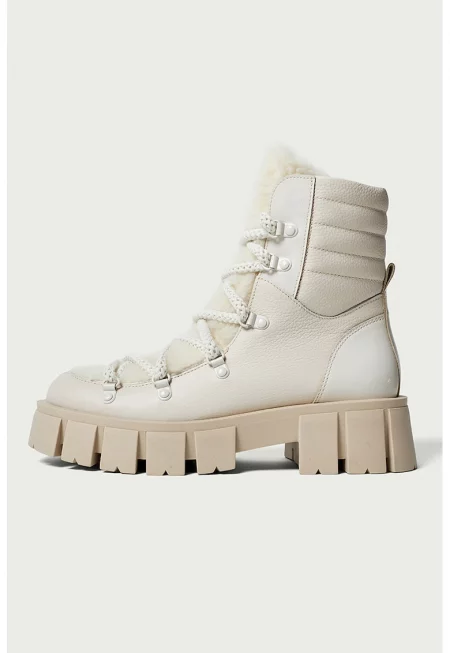 Боти с велур - кожа и връзки - Крем