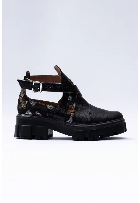 Кожени боти с отвори - Черен