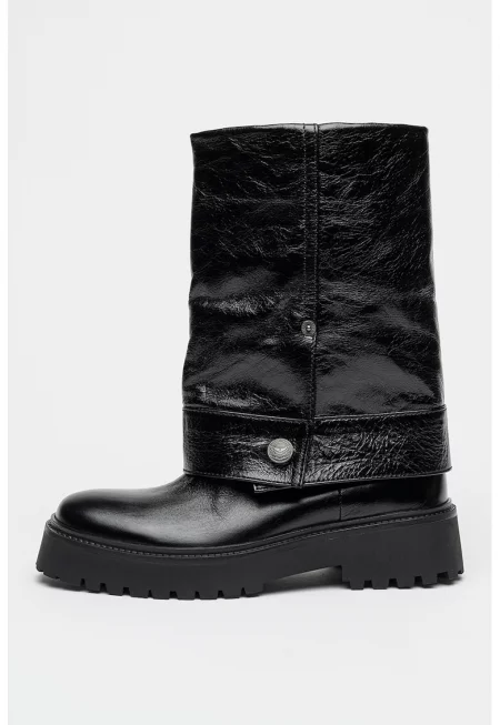 Дълги ботуши от кожа и еко кожа с цип - Черен