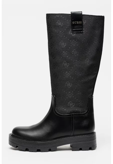 Кожени ботуши до коляното Kora с масивен ток - Черен