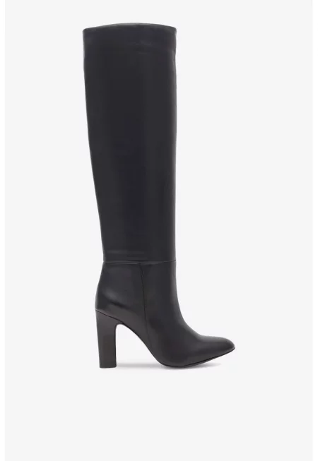 Кожени ботуши до коляното - Черен