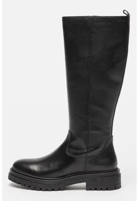 Кожени боти до коляното - Черен