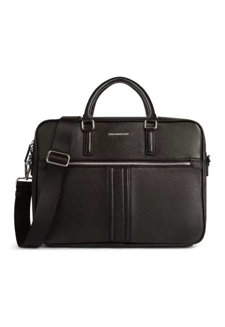 Кожена чанта за лаптоп с цип - Черен