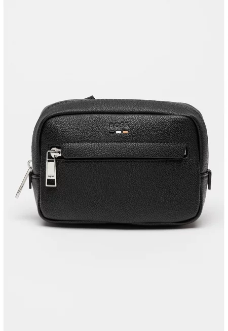 Чанта през рамо от еко кожа с цип - Избеляло черно