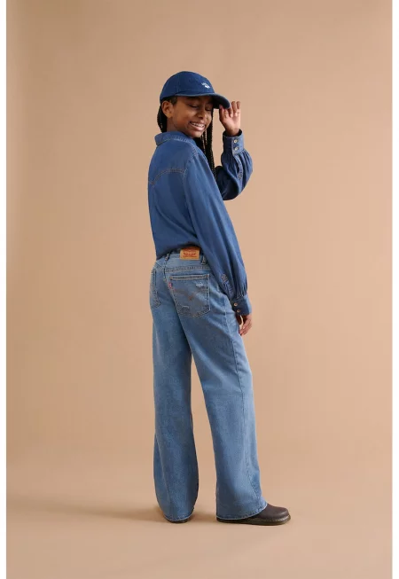 Дънки с памук и широк крачол - Светлосин
