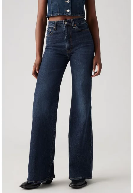 Разкроени дънки Ribcage с висока талия - Тъмносин/Син
