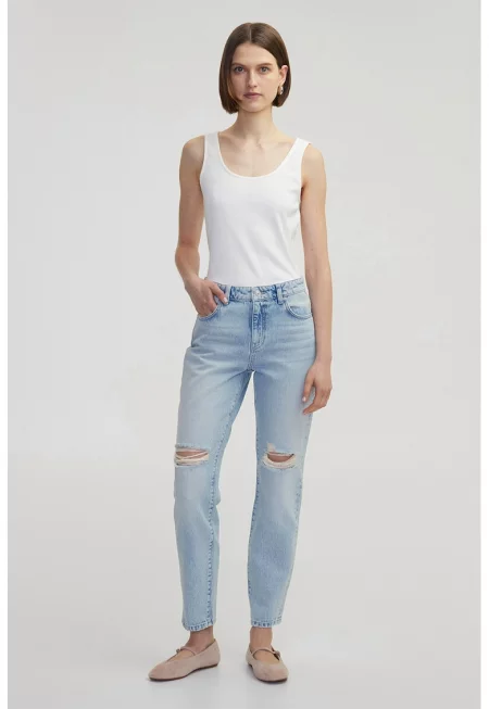 Дънки Mom със захабен ефект - Светлосин