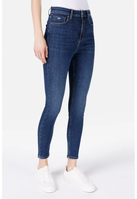 Дънки скини със средна талия - Петролно синьо