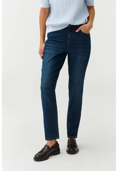 Дънки със средновисока талия и захабен ефект - Прашно синьо