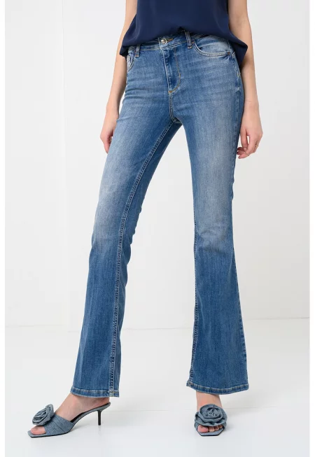 Дънки с широк крачол и джобове с плетена дантела - Тъмносин
