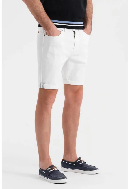 Дънков къс панталон със средновисока талия - Розова сьомга