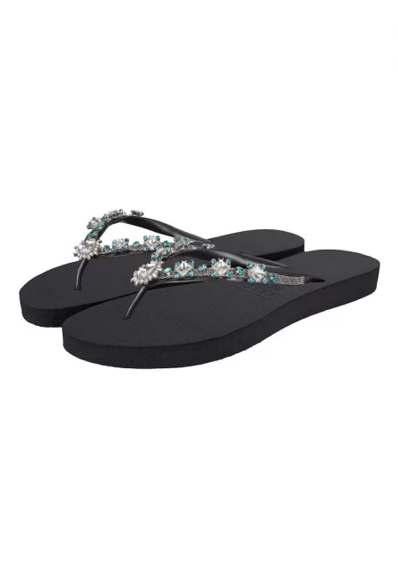Чехли Dolce Turquoise с декоративни камъни - Черен