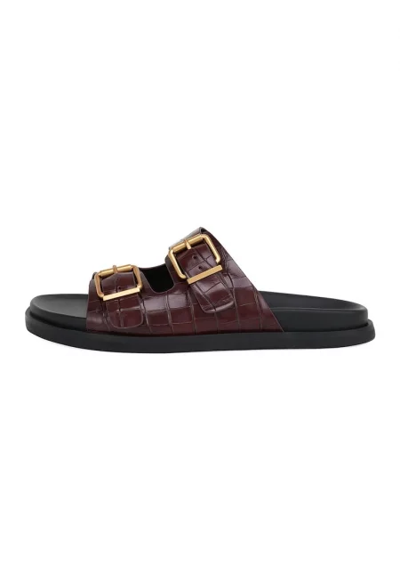 Кожени сандали с квадратен връх - Тъмнокафяв