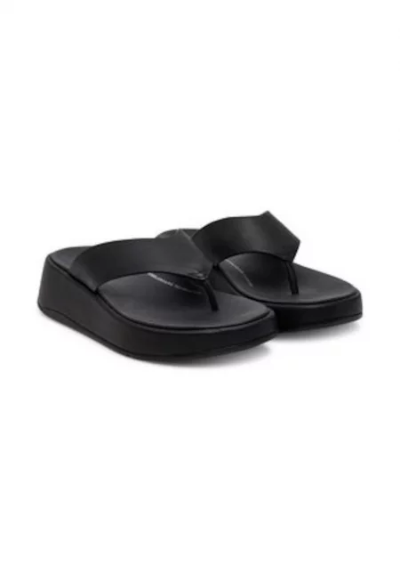 Дамски джапанки - 10021975 - Естествена кожа - Черен
