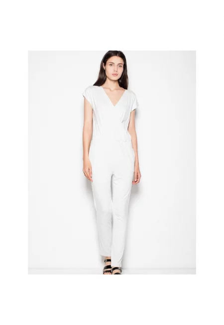 Дамски гащеризон  къс ръкав - връзка на талията - сив - вискоза