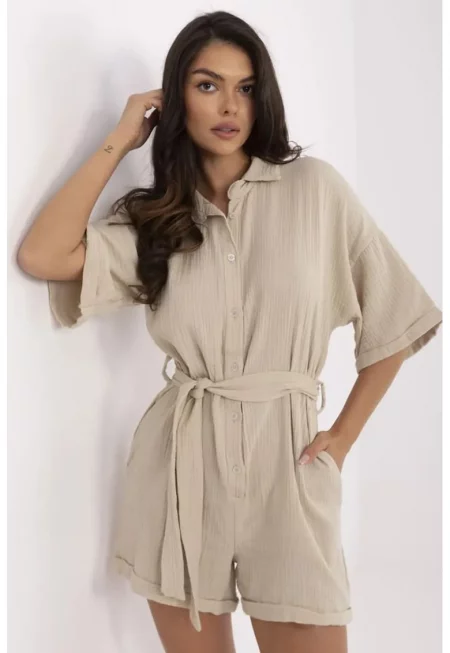 Къс памучен гащеризон с колан -