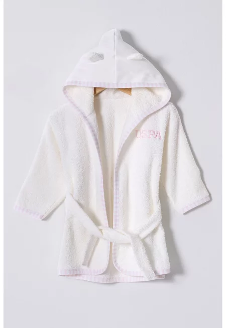 Халат с качулка и връзка - Слонова кост - Виолетов