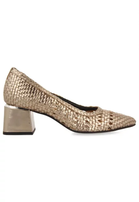 Кожени пантофки Mary Jane със сплетен дизайн - Кафяв